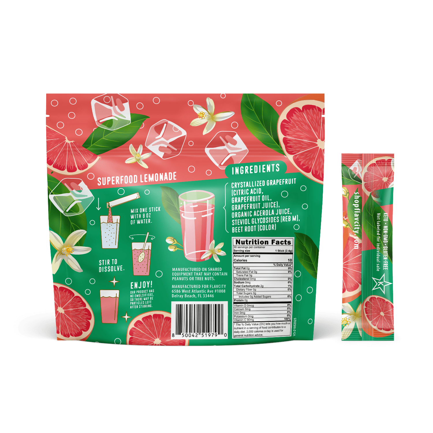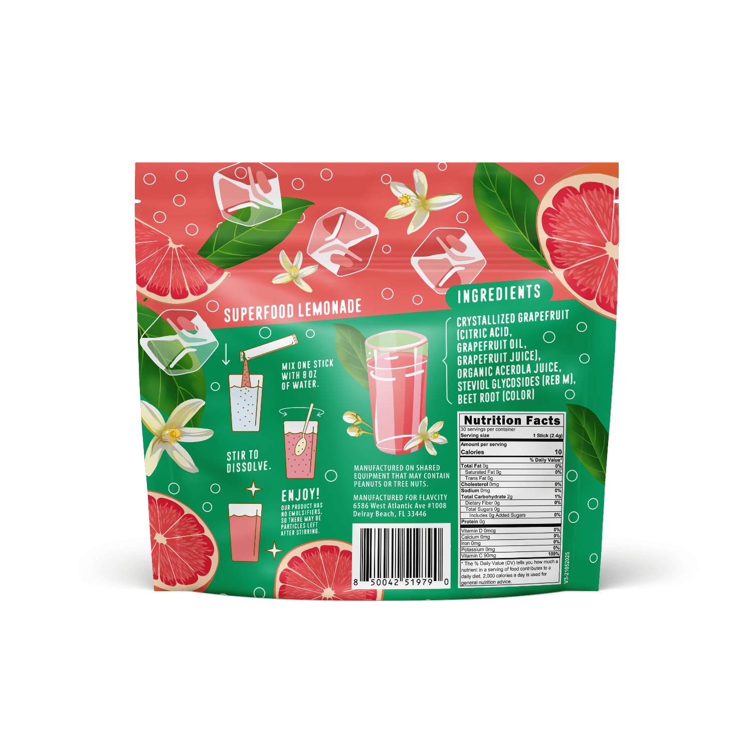 Crystallized Grapefruit (Citric Acid, Grapefruit Oil, Grapefruit Juice), Organic Acerola Juice, Steviol Glycosides (Reb M), Beet Root (Color)
